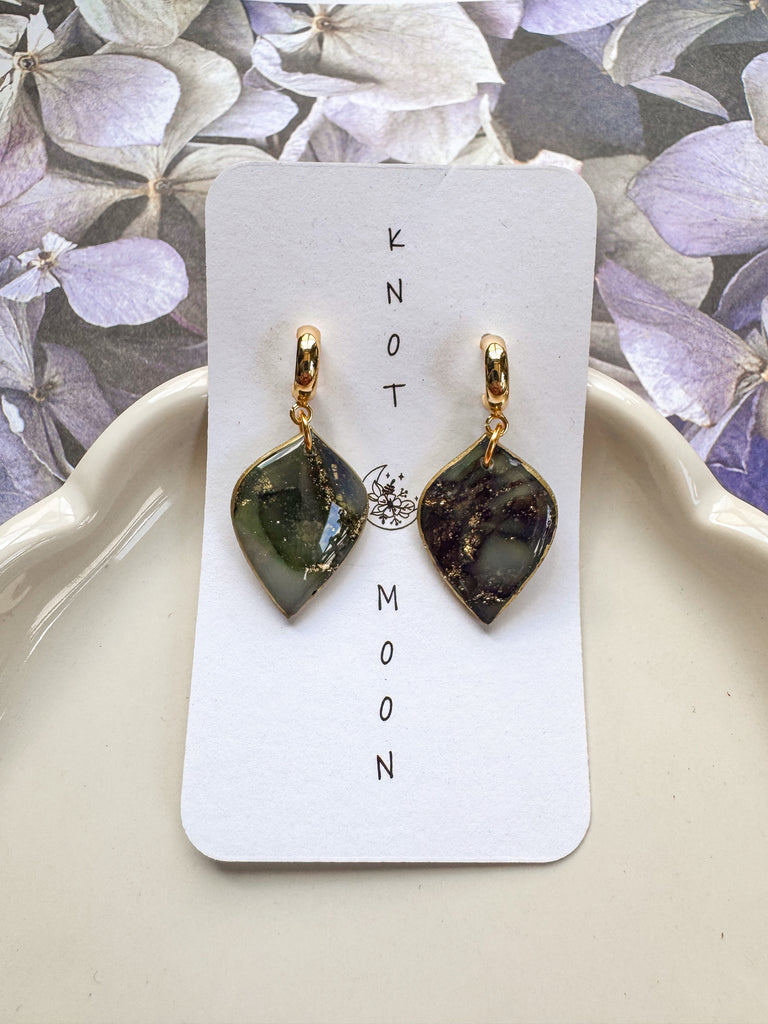 Winter Collection | Leaf Drops on Hoop Studs in Moss