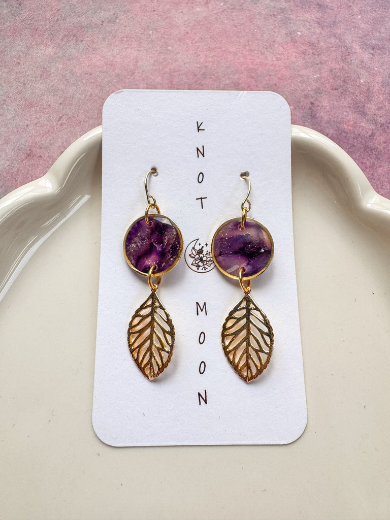 Winter Collection | Circle and Leaf Drops in Amethyst