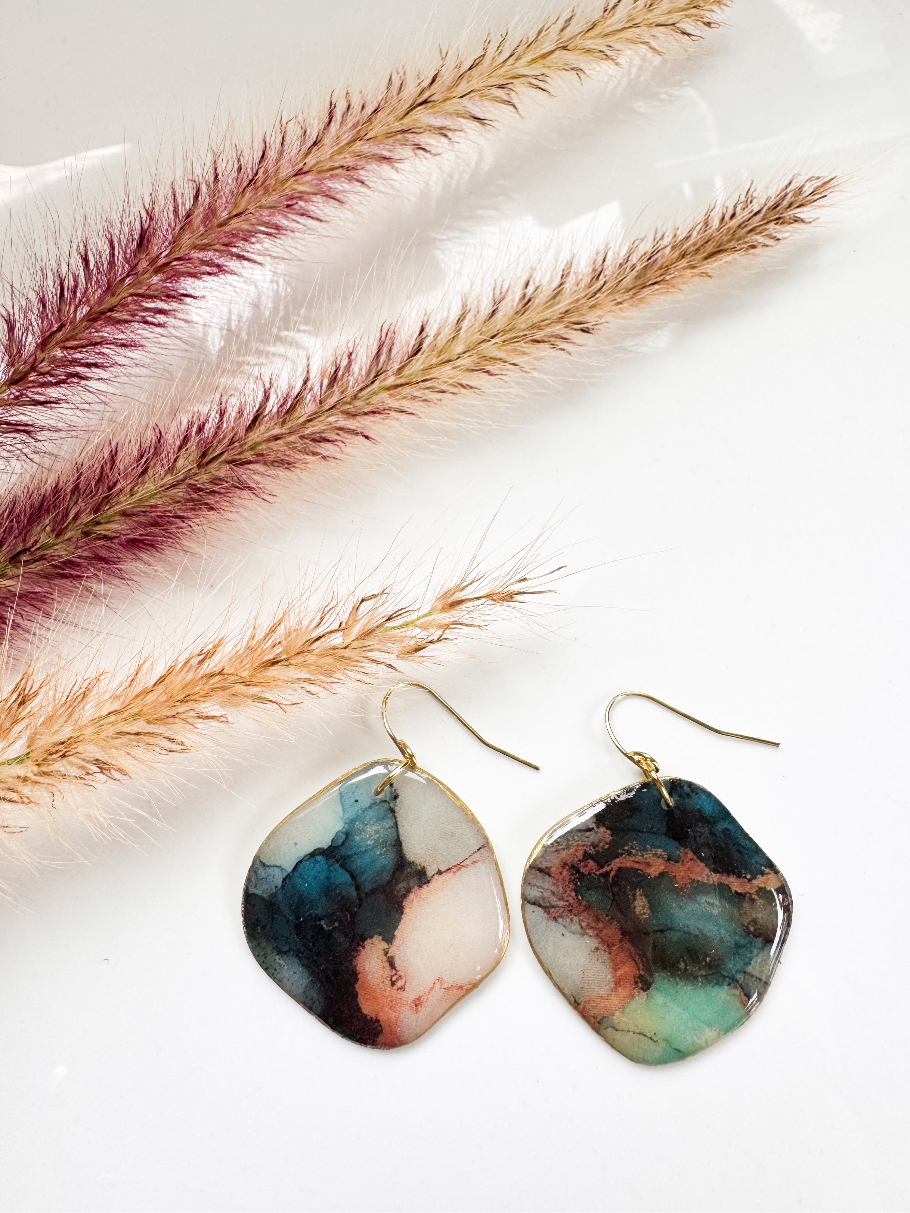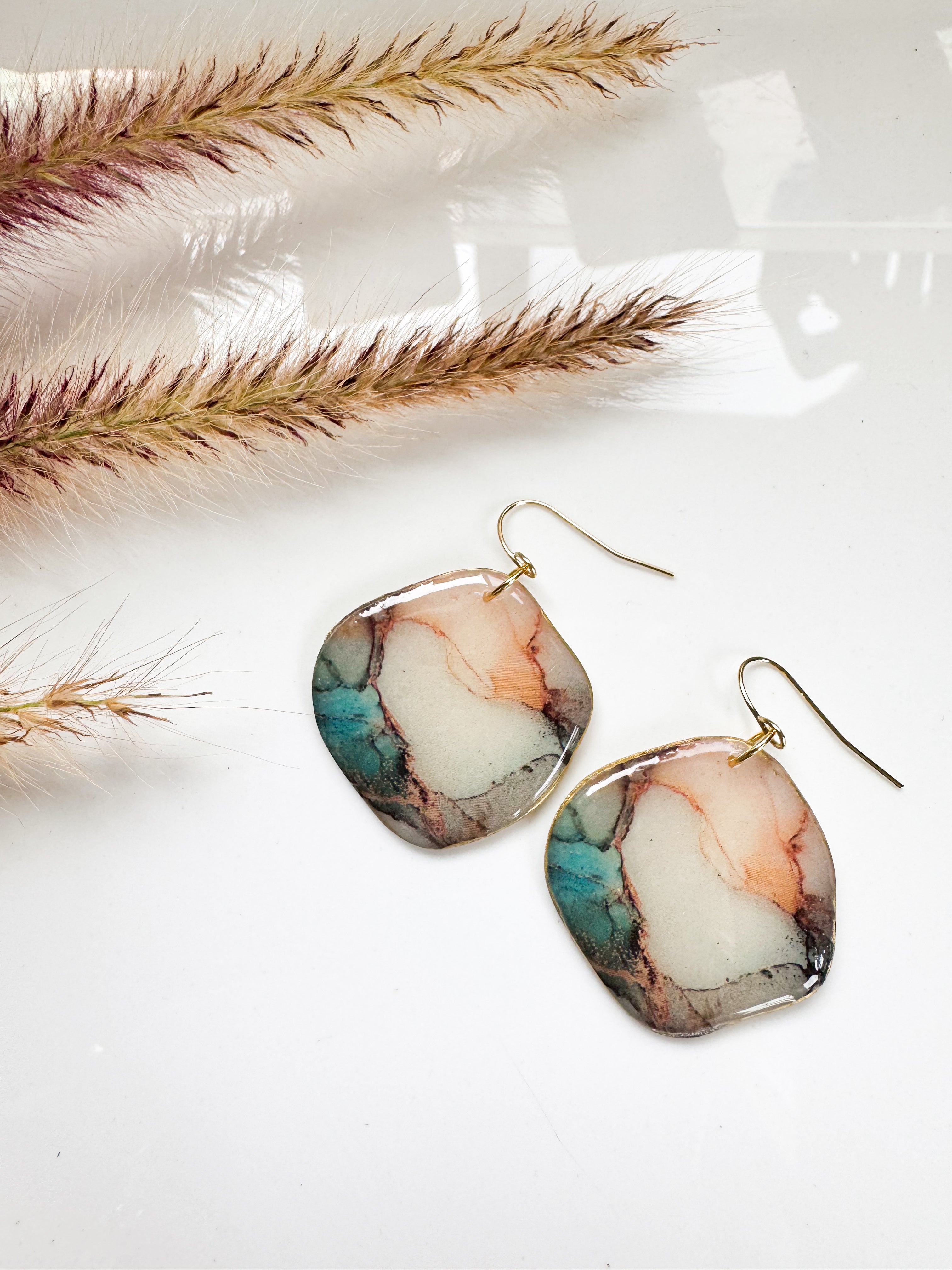 Faux Stone | Organic Disc Dangles in Teal